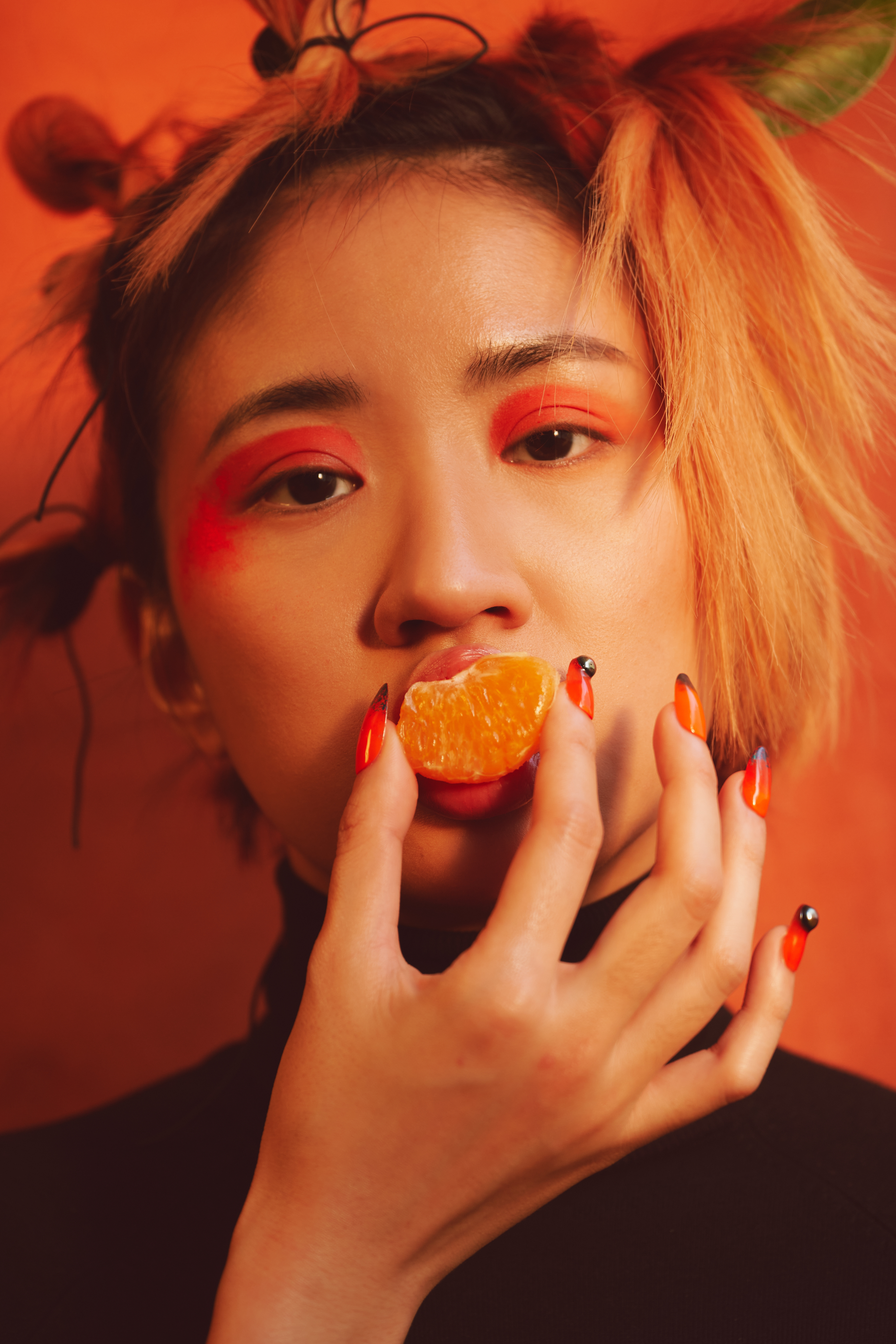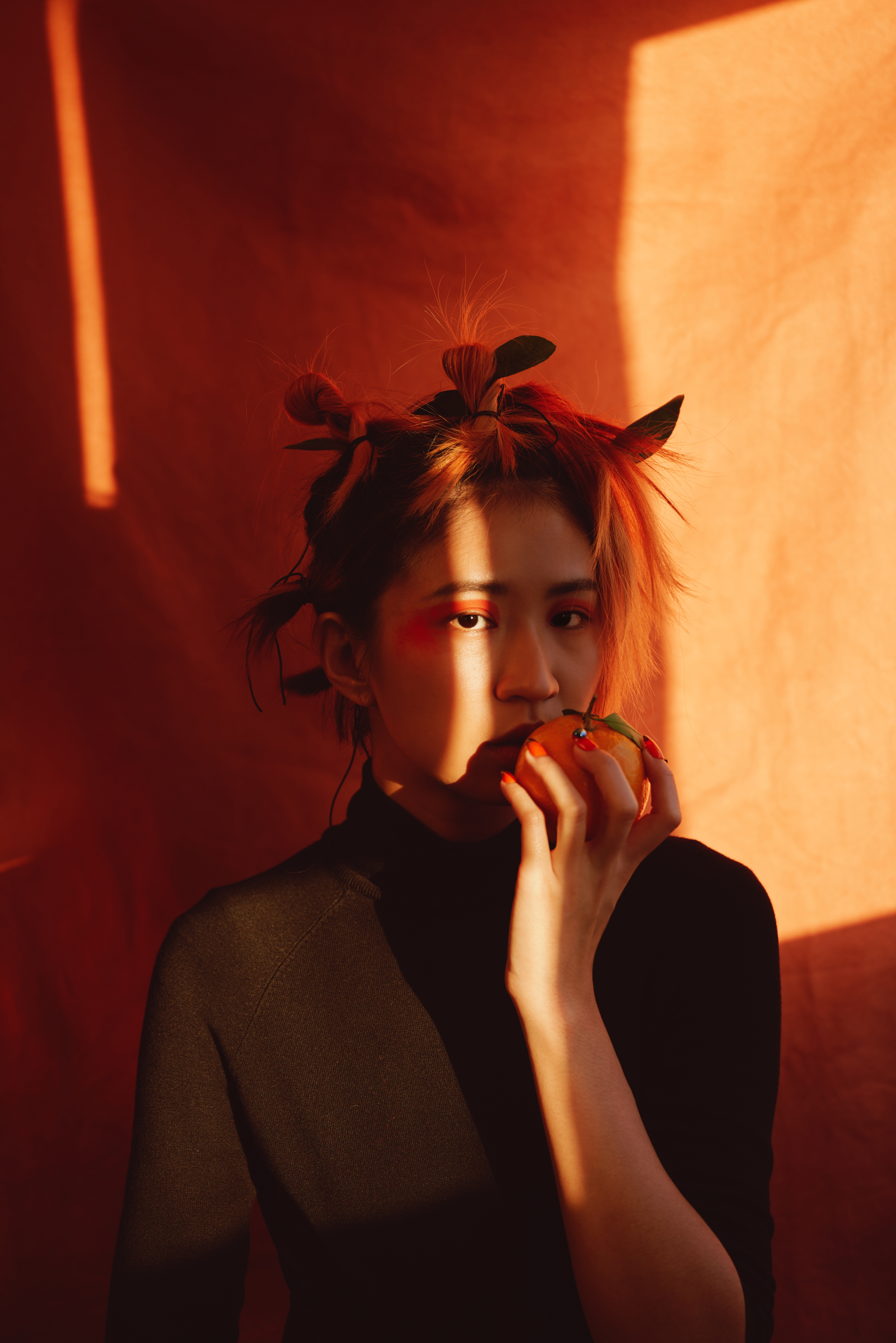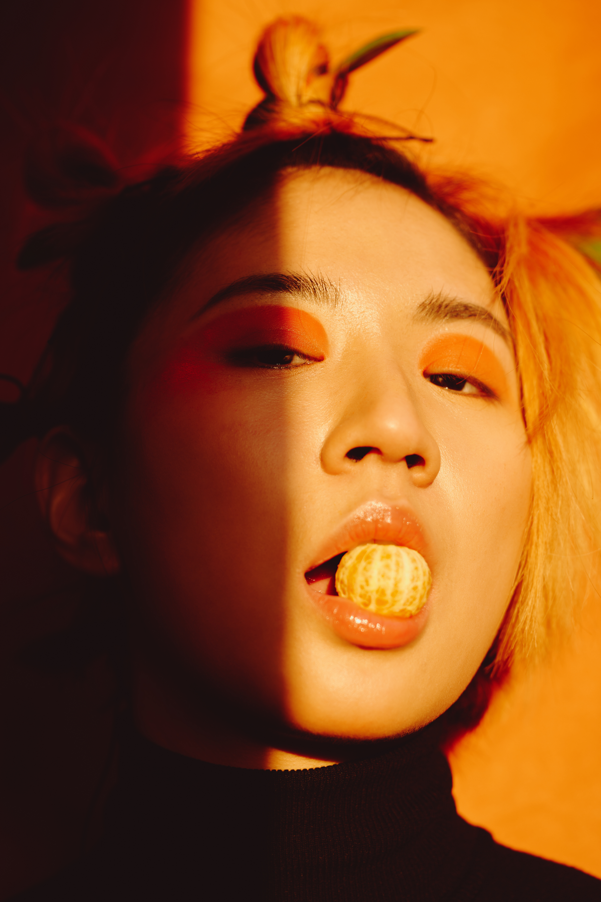 9m88, a jazz Taiwanese singer, stay chill studio conducted a creative promotion campaign inspired by her new hair color - orange. In collaboration with Berlin based uprising photographer Pin Ting Lo. To create a visual cycle to symbol to abstract concept of time and day by using background, lighting and set manipulation. We staged the morning, moon, and sunset scenes, demonstrating a series image of sober yet chaotic visuals,