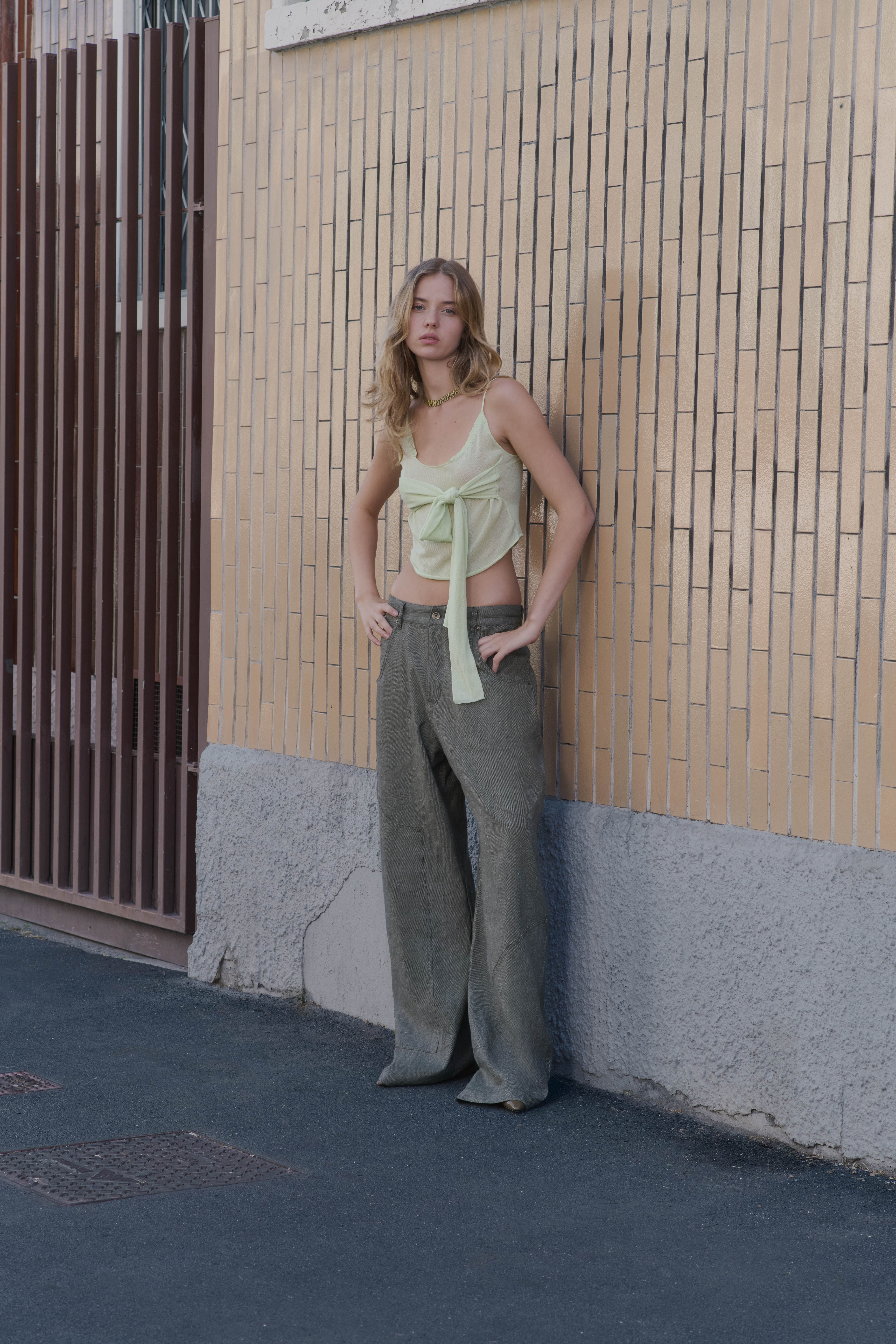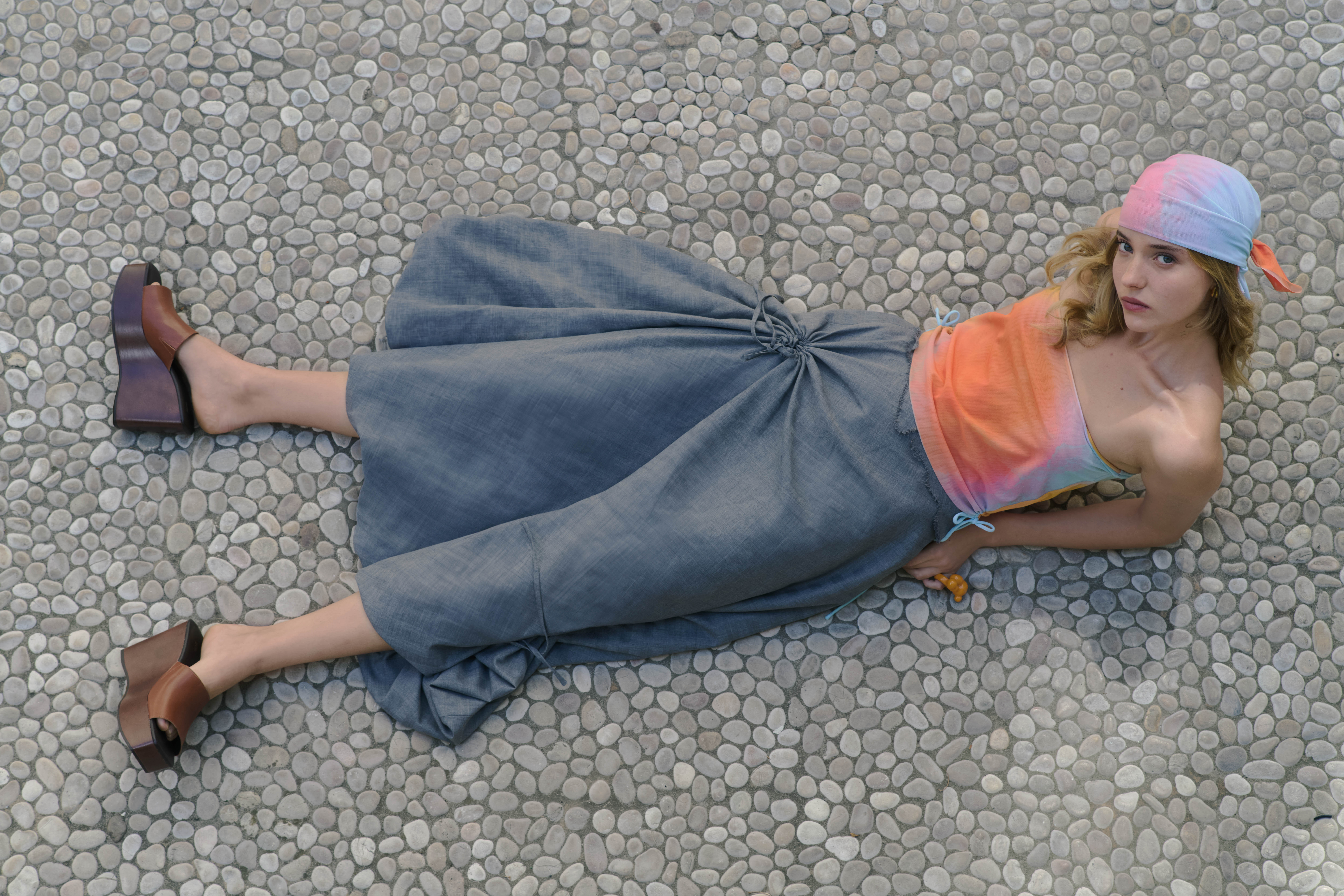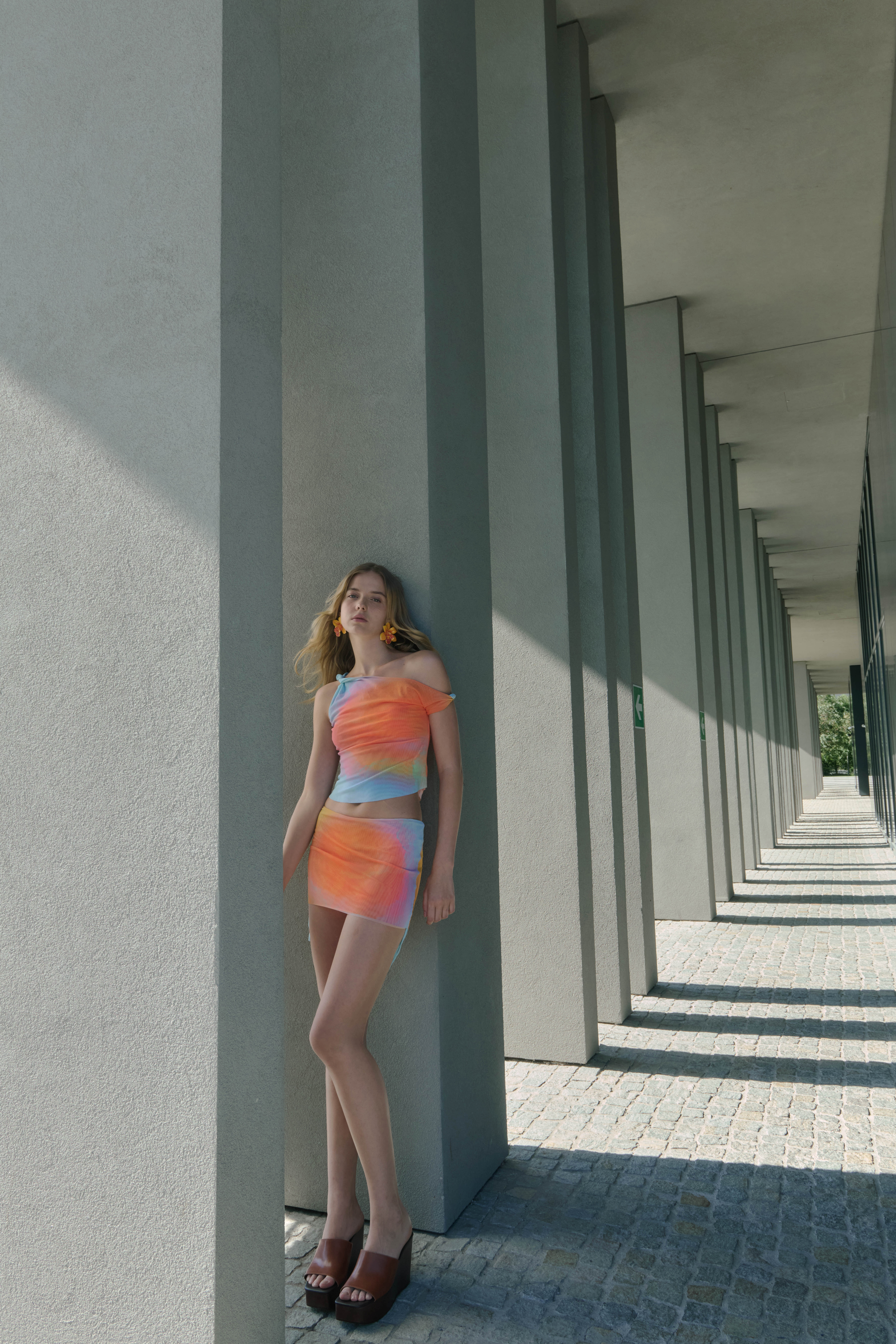 In our design, we harmonize strong and soft lines to express a "boundary-less" silhouette, with graphics inspired by frequency, extending in repetitive patterns.
